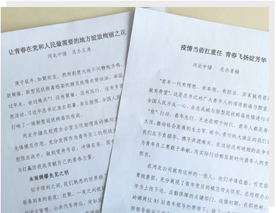 新冠肺炎疫情發(fā)生以來,公司青年員工在打贏防控阻擊戰(zhàn)和復(fù)工復(fù)產(chǎn)工作中,用實際行動踐行了初心使命、體現(xiàn)了責(zé)任擔(dān)當(dāng)。為更好地宣傳和弘揚(yáng)公司青年員工聽黨指揮、勇挑重?fù)?dān)、不畏艱險、英勇奮斗的感人事跡,公司團(tuán)委于4月26日至5月20日開展了“青春戰(zhàn)‘疫’”主題征文活動。廣大青年員工積極參與,踴躍投稿,用文字講述自己的“戰(zhàn)‘疫’”故事和對疫情防控中彰顯出的中國特色社會主義制度優(yōu)勢,對堅持黨的集中統(tǒng)一領(lǐng)導(dǎo)、堅持以人民為中心的價值追求,集中力量辦大事等的深入思考。