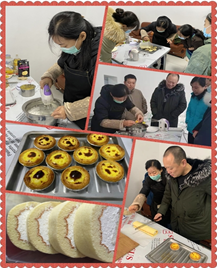 本次活動,公司特邀請了東三教分公司烘焙達(dá)人許俊彥,為大家教授奶油蛋糕卷和蛋撻的制作方法。活動現(xiàn)場,許俊彥詳細(xì)示范操作過程,原料如何配比、烘焙溫度如何掌控、奶油如何打發(fā)每個步驟一絲不茍。大家認(rèn)真聽講,詳細(xì)記錄每個制作環(huán)節(jié)與要點,時不時向老師提出問題,相互間交流烘焙經(jīng)驗與心得。少時濃郁的香氣彌漫著整個活動現(xiàn)場,蛋糕和蛋撻紛紛出爐,大家在歡聲笑語中,品嘗著健康美味,感受著幸福生活。